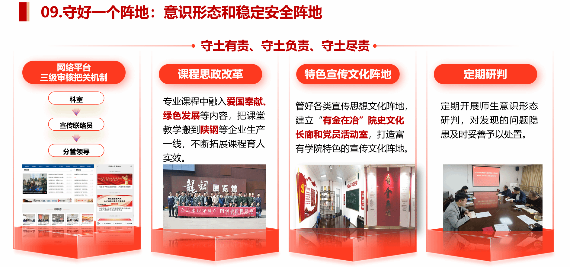 学院党委连续被评为“先进党委”,首批入选学校“党建工作示范学院”,获批“全省党建工作标杆院系”,成为全校第一个党建、团建省级“双标杆”创建学院,学院团委获“全国钢铁行业五四红旗团委(标兵)”。1个党支部入选“全国党建工作样板支部”,2个党支部入选“全省党建工作样板支部”,4个党支部入选校“党建工作样板支部”,获批“双带头人”教师党支部书记工作室2个。一流专业、一流课程、国家级人才、国家自然科学基金重点项目、国家重大科研仪器研制项目、国家重点研发计划项目都实现新突破。连续荣获“年度考核优秀学院”,荣获“陕西省师德建设先进集体”荣誉称号。