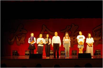 赵福才老师的发自肺腑的一席寄语——生活不乏感动,本届校运会中也涌现了一批批优秀的冶金人为我们的生活增加感动,化工1602班的高璐、冶金1306班的汤日林、冶金1506班范严艺等同学的感人事迹无时无刻不为我们带来正能量,谱写着一曲曲感人的乐章。“感动冶金”在声情并茂的诗朗诵中将现场气氛推向高潮,改编自汤日林带病参加运动会、拔针跑向赛道的感人话剧——“没有遗憾”,诉说着冶金学子的感谢、感激和感动,赢得了现场油然且热烈的掌声。