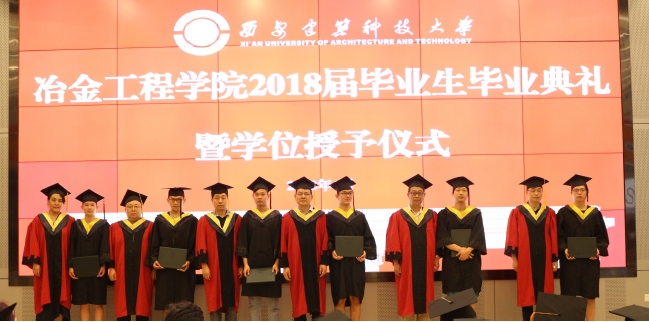 毕业典礼在充满祝福、感动和回忆的毕业视频中拉开了帷幕,学院院长王快社教授为毕业生们送上真挚的祝福和殷切的希望,他回顾了2018届毕业生们在大学期间取得的各项优异成绩,代表学院向全体毕业生表达了祝贺,并勉励同学步入社会后,要不忘记学习,敢于面对挫折和困难,发扬冶金人不怕苦、不怕累、敢于拼搏、勇于解决问题的精神,要用博大的胸怀包容一切,团结向上,并且希望同学们做一个品行高尚的人,做一个学识渊博的人,做一个担当有为的人,最后希望大家关注母校、关心学院发展,能常“回家”看看。