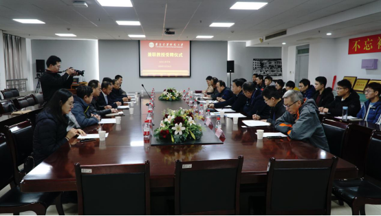 院长李林波教授介绍了曲胜利先生的个人履历。姚尧为曲胜利颁发了聘书,对他能够支持我校冶金工程等学科的发展表示感谢,并介绍了学校的办学历史、学科特色等情况。姚尧表示,聘任兼职教授是学校加强师资队伍建设的重要内容,对加快学校人才培养、学科建设、科技创新、扩大社会影响具有重要意义。希望曲胜利先生能充分发挥所长,利用广泛社会资源,为学校发展贡献力量。他还强调,相关部门和学院要为兼职教授在校开展工作提供服务保障,更好地促进师资队伍建设,培养更多优秀人才。