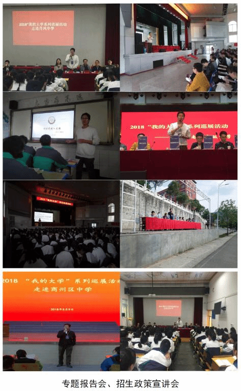 学工办主任赵福才与陕西省8所高校招生宣传员赴商洛市商南县高级中学、丹凤中学、洛南中学、山阳中学、商州区中学5所高中开展招生宣传工作,先后为5所高中的4400余名高二、高三学生作《设计我的人生路》专题报告,宣传介绍我校办学优势、专业特色、就业去向、招生政策和2018年吸引优秀生源措施,同时与高中学校领导、教师代表和高三年级学生进行深入交流咨询座谈。