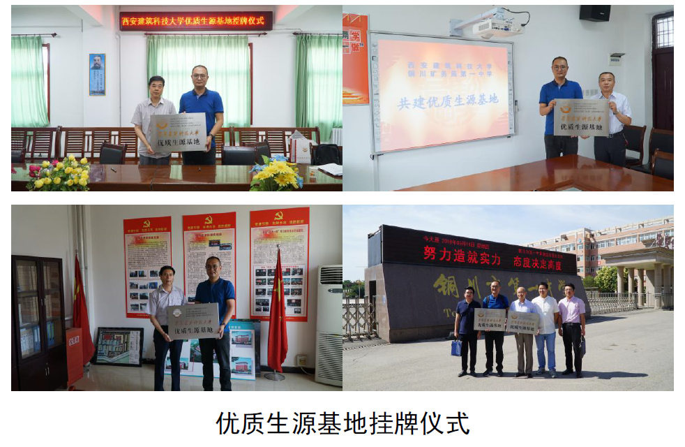 党委副书记、副院长张佩、有色冶金教研室主任方钊、学工办主任赵福才、团委书记康彦、团委副书记徐瑞朝赴铜川市开展招生宣传工作。期间,与铜川市第一中学、铜川市同官高级中学、铜川矿务局第一中学和耀州中学等5所学校领导、教师代表进行深入交流座谈,调研各中学在校生结构以及高考志愿填报影响因素等情况,重点就我校办学历史、师资队伍、人才培养、就业去向以及吸引优秀生源政策等方面内容进行了详细介绍,与5所中学分别签订优质生源基地建设协议,并举行了优质生源基地挂牌仪式。