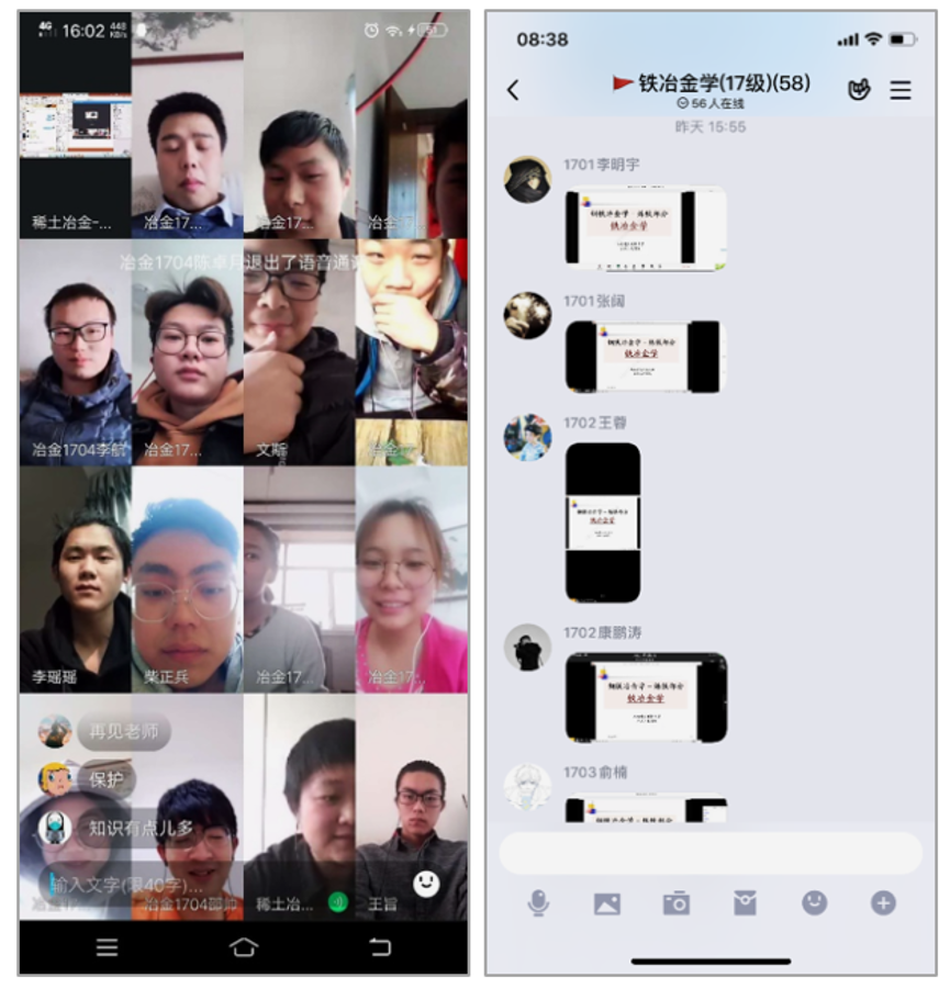 了学校前期的多场培训,并认真学习了学院推送的教学视频,经过多次实践,以及与其他老师的沟通交流,最终确定了专业性比较强的雨课堂直播,并引用了中国大学MOOC平台中的资源,精心建立完备的资料库。后来随着其他高校开学后传来关于网络卡顿的消息,为保证直播能够顺利进行,折媛老师又分别准备了腾讯会议,腾讯课堂,以及QQ群播放PPT+语音三套备用方案。在周一1、2节《冶金工业技术经济》的授课中,折媛老师7:20就开始做授课的前期准备,后因网络卡顿采用了备选方案一“腾讯会议”教学模式。周二《铁冶金学》授课,利用腾讯会议和QQ群的组合模式,进行了与课堂教学同时长的50min+50min直播教学,期间部分利用MOOC课程库视频资源,衔接快速顺畅,小窗口师生互动性好,并在课间休息时间在QQ教学群完成了“群接龙”签到,整个教学由于前期准备充分,全程流畅无卡顿。