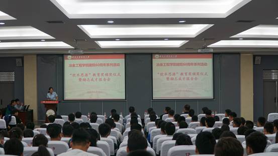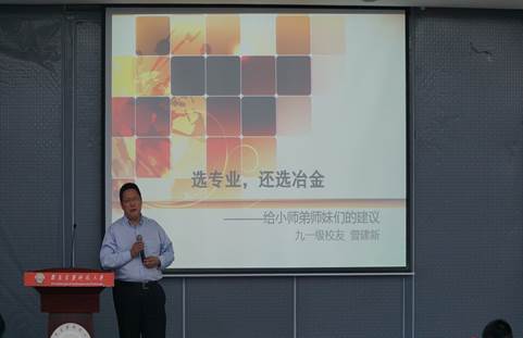 随后,我院91级杰出校友曾建新为到场师生作了题为《选专业,还选冶金》的励志成才报告。他结合自身多年在国际市场打拼的经验,以开阔的视野和格局分析讲解了冶金行业未来发展前景,希望同学们能坚守自己所学专业,学到一身理工科专业的硬功夫。学长用诙谐幽默的语言,传达给大家许多值得深刻思考的道理,赢得现场观众的热烈掌声。