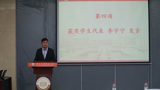 材料成型及控制工程专业1602班李宇宁同学作为获奖学生代表上台发言。首先他代表全体获奖同学,向关心学院教育发展的学长表达了深深的谢意,并就自己大学生活的体会同大家分享,同时他表示全体冶金学子当心怀感恩,奋勇前行。