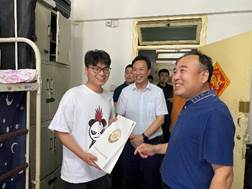 6月29日下午,学院领导班子成员以及毕业年级辅导员前往学生宿舍看望慰问即将离校的2021届毕业生同学,并向同学们赠送了学院精心准备的毕业纪念礼包。学院领导和老师详细询问了毕业生同学的近期行程计划和就业去向,鼓励毕业生同学在新的环境要有热情、有担当、有作为,要以满腔热血和昂扬向上的姿态直面挑战,积极进取,勇创佳绩。同时希望同学们能心怀母校,不忘师恩,常回学校看看。