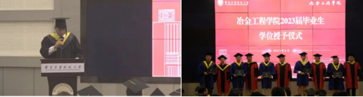 取得的成绩,在今后的道路上同学们要厚植爱国情怀,传承冶金精神,砥砺奋斗之志,勇担时代使命。与此同时,向同学们提出了三点希望:一是希望同学们前路无惧有勇气,在逆境中坚韧自强,在起伏中豁达宽容;二是希望同学们志存高远有志气,以天下为己任,做国之栋梁;三是希望同学们行走无疆有底气,终身学习,练成过硬本领。最后李林波院长祝愿各位毕业生一帆风顺,前程似锦。