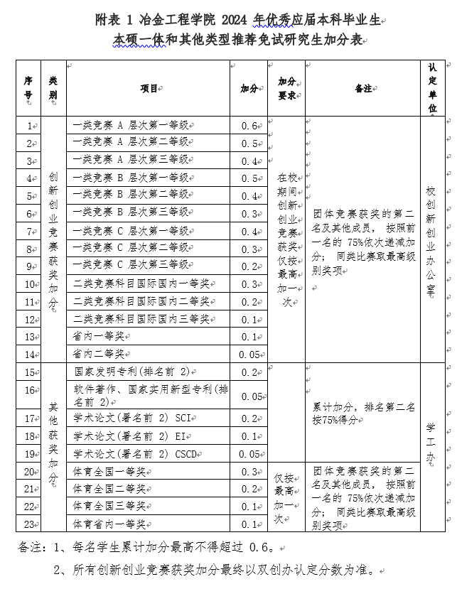 其中正常推免加分参照《西安建筑科技大学大学生创新创业竞赛获奖一览表》,本硕一体加分参照《手机即时比分 2024年优秀应本科毕业生其他类型推荐免试研究生加分表》附表1