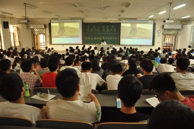 “生命不止坚毅与奋斗,有梦想才是有意义的追求。”一首《大学问》唱出了多少年轻人的理想和追求。在活动现场,由工作人员播放的一个关于班级成长之路的视频瞬间点燃了全场对于本次活动的热情。在关于班级成长之路的视频播放完成之后,工作人员紧接着又放出了一个非常有意思的视频。视频选材来自于周星驰的经典电影,它将电影原有画面裁剪下来,再进行重新组合,使其富有与之前完全不同的含义。其中励志的话语层出不穷,对大学生当下生活的思考也引人深思,全场同学全神贯注,被视频精彩的内容深深吸引。最后,一个来自于《奔跑吧,兄弟》的《黄河大合唱》的视频再次牵起了全场同学的心,视频中精彩绝伦的二部轮演唱,指挥富有激情的领导,加上经典的歌词,经典的旋律,无一不让华夏儿女心生澎湃。