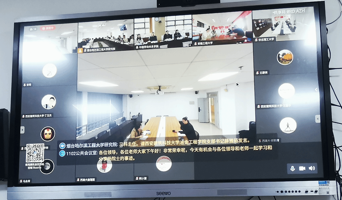 党委参加高校党支部联学联建活动—学习“时代楷模”杨士莪院士精神交流座谈会,学院党委和冶金系教工党支部党员15人和中国劳动关系学院、哈尔滨工程大学烟台研究院、华北理工大学、安徽工程大学等学校党委通过线上和线下参加了交流座谈会。