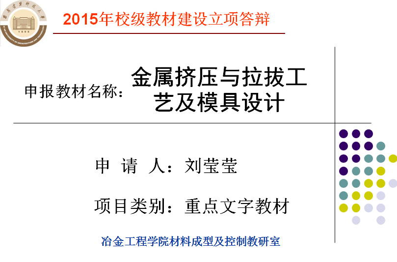 推荐《金属挤压与拉拔工艺及模具设计》参加学校重点教材立项评审。