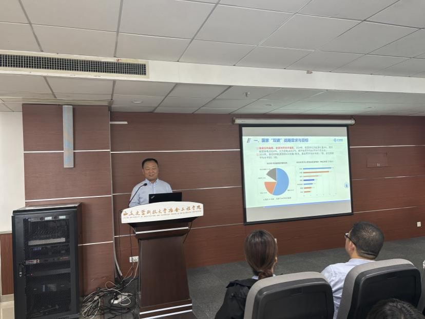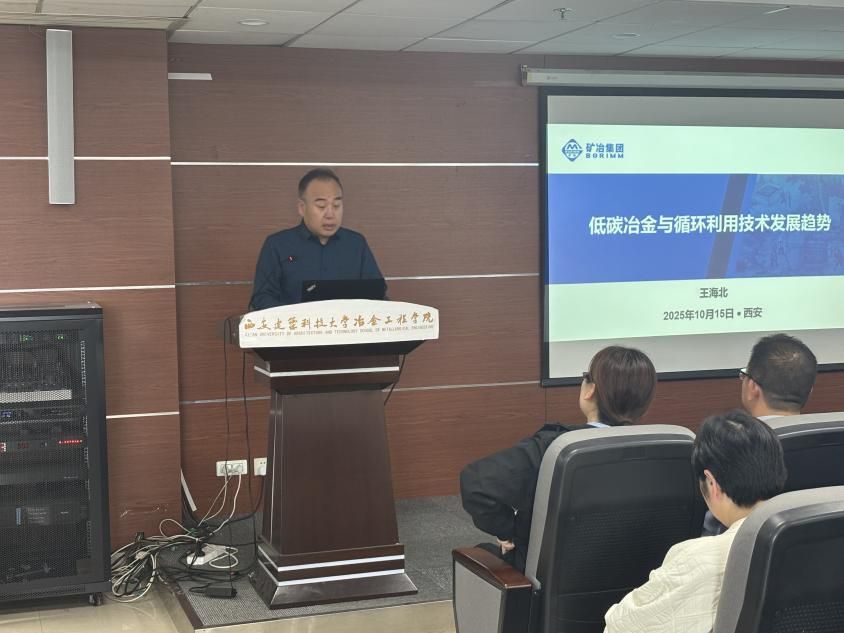 报告环节,王海北教授率先以“低碳冶金与资源循环技术现状”为题展开分享。作为教授级高工、博士生导师,他结合主持的80余项项目(含20项国家级项目)经验,围绕复杂难处理矿产资源提取、冶金固废资源化等研究方向,阐述技术发展现状与突破,其团队成果曾获国家技术发明二等奖。
