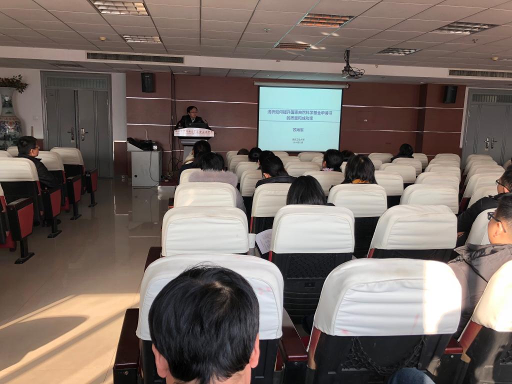 报告会上,苏海军教授首先介绍了各类科学基金的分类情况、往年不予受理的前十大原因,以及2019年国家基金的政策变化。接着,苏海军教授从摘要、立项依据、研究内容、目标等多方面详细阐述了如何书写自然科学基金申请书以及需要注意的事项,并对如何选题进行了重点阐述。最后,苏海军教授回答了老师的提问,在讨论中,大家对提升自然科学基金的申请书的质量有了更深一步的理解。