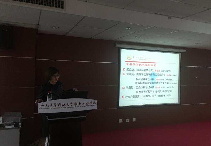 本次报告邀请了西安建筑科技大学科技处成果部陈钰老师,陈老师结合了自己多年来在成果部的工作经验,从主要科学技术类奖励体系和科学技术奖励推荐工作的注意事项两个方面展开介绍。报告会后,陈老师对老师们提出的问题一一进行了解答,现场气氛热烈,老师们受益匪浅,争取做出更多更高的学术成果申请奖励。