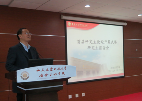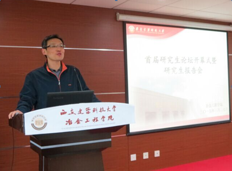 赵俊学教授致辞,从两个方面向同学们讲述了本次报告会的目的,即一方面可以检验学生的研究成果,实现研究生之间的学术交流,而另一方面,也可以培养研究生科研成果的阐述讲解能力。紧接着,由研究生院副院长王燕平老师致开幕词。