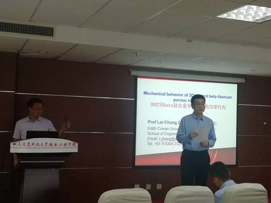 工科楼1111学术报告厅顺利举办。我院刘世锋教授有幸邀请到澳大利亚埃迪斯·科文大学工程学院张来昌教授为我院师生带来题为“Mechanical Behavior of 3D Printed Beta Titanium Alloy Porous Scaffolds”的学术讲座。本次讲座由我院副院长李小明主持。