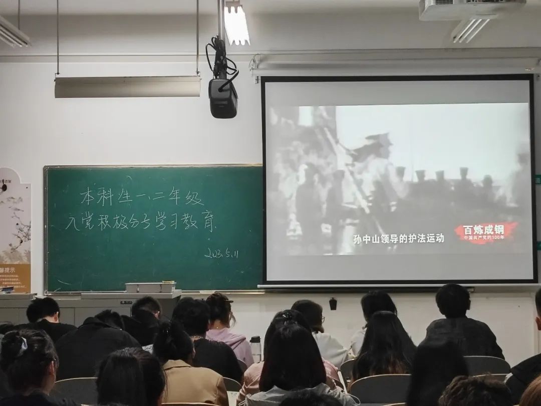 活动伊始,主持人为到场的党支部成员们播放记录了中国共产党革命历史及精神的《百炼成钢》、《非凡成就 伟大变革》等红色短片,让同学们通过观看视频的形式,亲身感受党史,身临其境地了解中国共产党建党的艰辛,引导同学们去学习、发扬党的二十大精神。