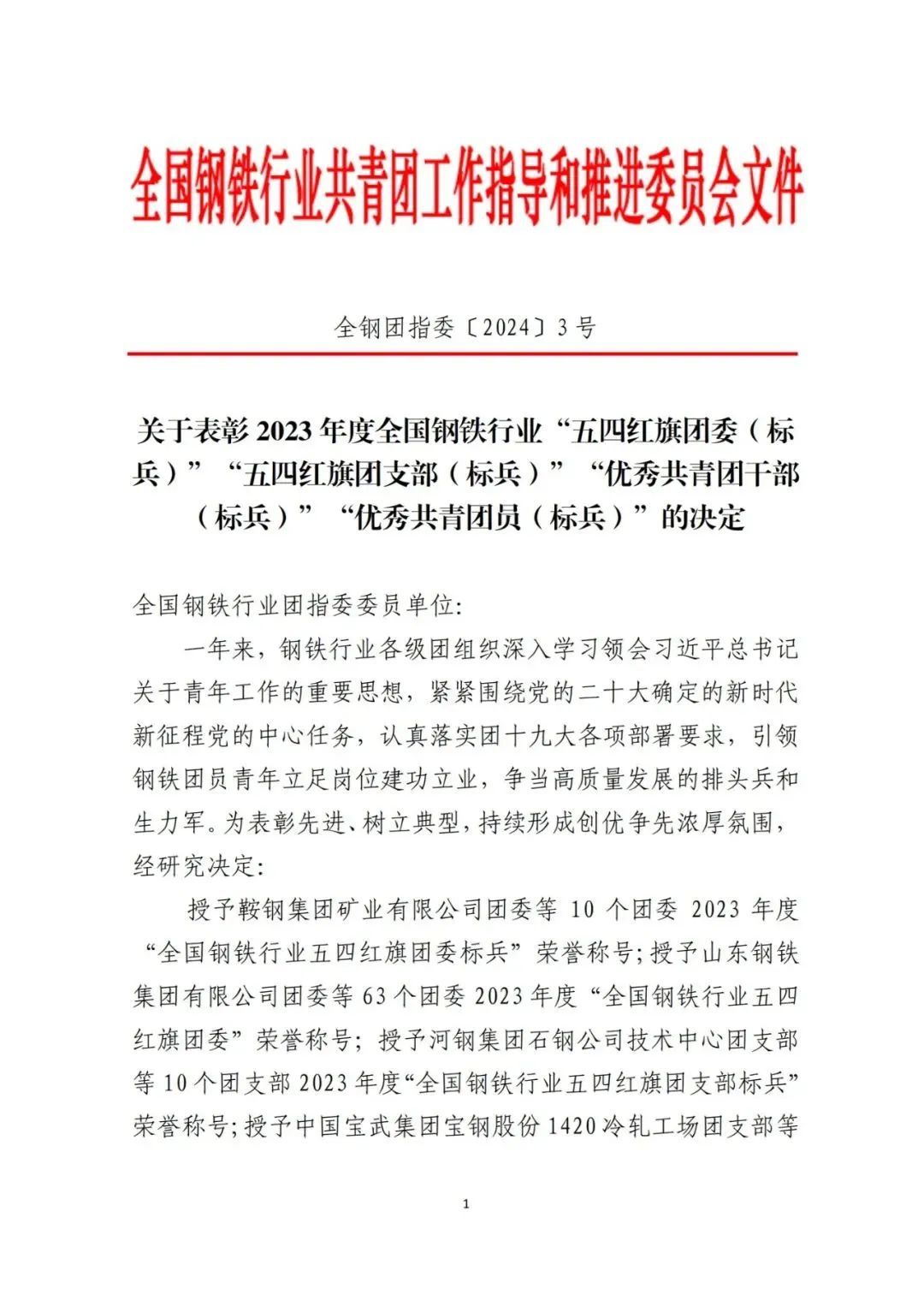近日,全国钢铁行业共青团工作指导和推进委员会下发了《关于表彰2023年度全国钢铁行业“五四红旗团委(标兵)”“五四红旗团支部(标兵)”“优秀共青团干部(标兵)”“优秀共青团员(标兵)”的决定》,手机即时比分