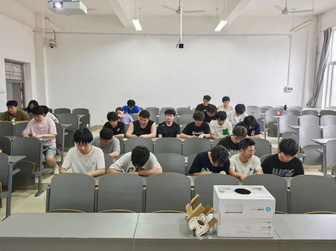 活动最后,同学们在舒缓音乐中选择代表情绪颜色的便签纸,匿名写下烦恼后撕碎投入"情绪回收箱"。随后,大家在彩纸上写下祝福投入"祝福盲盒",并随机抽取他人寄语。这个充满仪式感的环节,既帮助大家释放压力,又传递了温暖与力量。