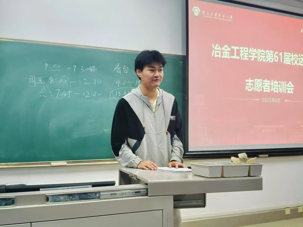 于4月24日18:00在学府城13-103开展运动会志愿者培训会,参加本次培训会的有团委志愿服务中心负责人武乃涛、主席团成员郭浩男。