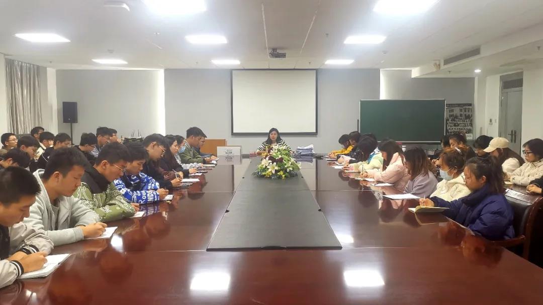 本科生2019级召开了学风建设主题会议,会议由2019级本科生辅导员董甜子老师主持,本科生2019级各班班长、团支书、预备党员和发展对象参加。