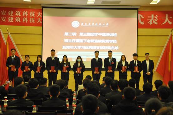2021级本科生辅导员陈善勇老师为第三期团学干部培训班优秀学员和2020-2021学年“青年大学习”优秀团支部颁奖。