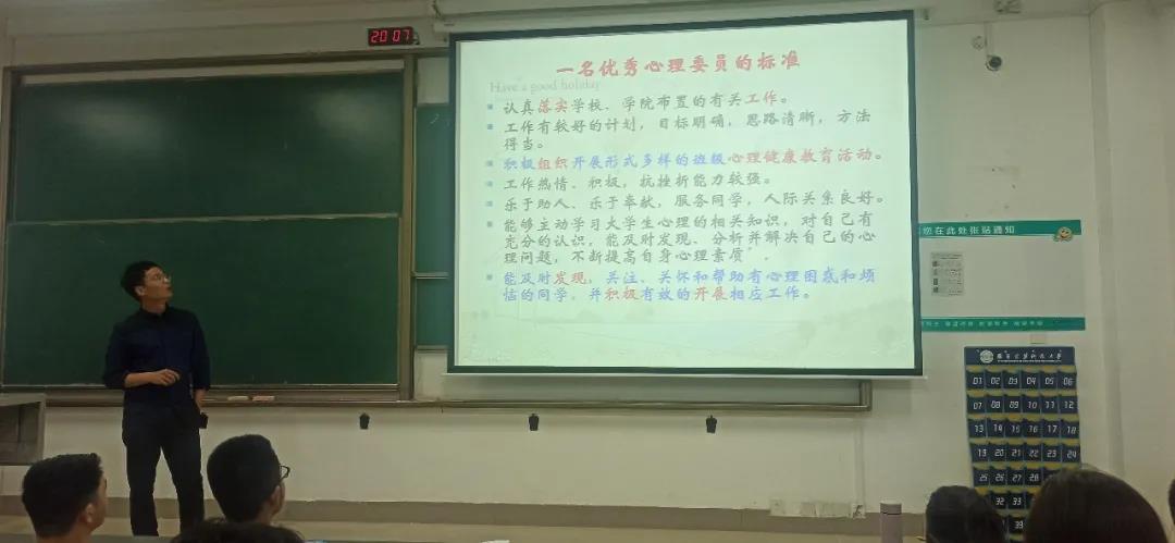 其次,罗帅老师向同学们提到了心理委员和舍长在日常生活中的定位与职责。他们在班级中是班干部是心灵使者更是关键时候的信息员。心理健康教育有五级体系,第一级是周围的同学,第二级是舍长,第三级是心理委员,第四级是导员,第五级则是学校心理中心。罗帅老师着重强调了心理委员和舍长的工作及日常需要关注的同学类型,避免心理危机的出现进而形成悲剧。