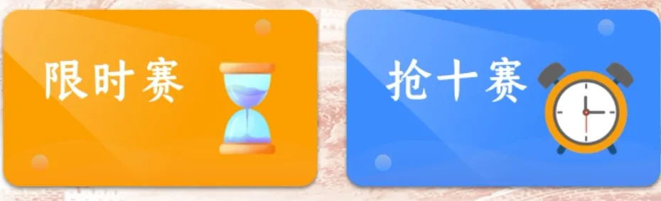 2.PK 模式:选手选择“限时赛”或“抢十赛”,由系统随机匹配不同学校参与PK模式答题的对手。【①限时赛为双方在 3 分钟内,答题数量多者胜,最多 30 题。②抢十赛为双方在 3 分钟内,先答对 10 题为胜,PK胜利获得 30 积分。】