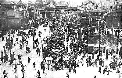 1935年12月9日,北平(北京)大中学生数千人举行了抗日救国示威游行,反对华北自治,反抗日本帝国主义,要求保全中国领土的完整,掀起全国抗日救国新高潮。12月12日,北平学生举行第5次示威游行,高呼“援助绥远抗战”、 “各党派联合起来”等口号。这是中国共产党领导的一次大规模学生爱国运动。在“冀察政务委员会”计划成立的12月16日,北平学生和各界群众1万余人又举行示威游行,迫使冀察政务委员会延期成立。之后,天津学生又组成南下扩大宣传团,深入人民中间宣传抗日救国。杭州、广州、武汉、天津、南京、上海等地相继举行游行示威。北平学生的爱国行动,得到了全国学生的响应和全国人民的支持,形成了全国人民抗日民主运动的新高潮,推动了抗日民族统一战线的建立。