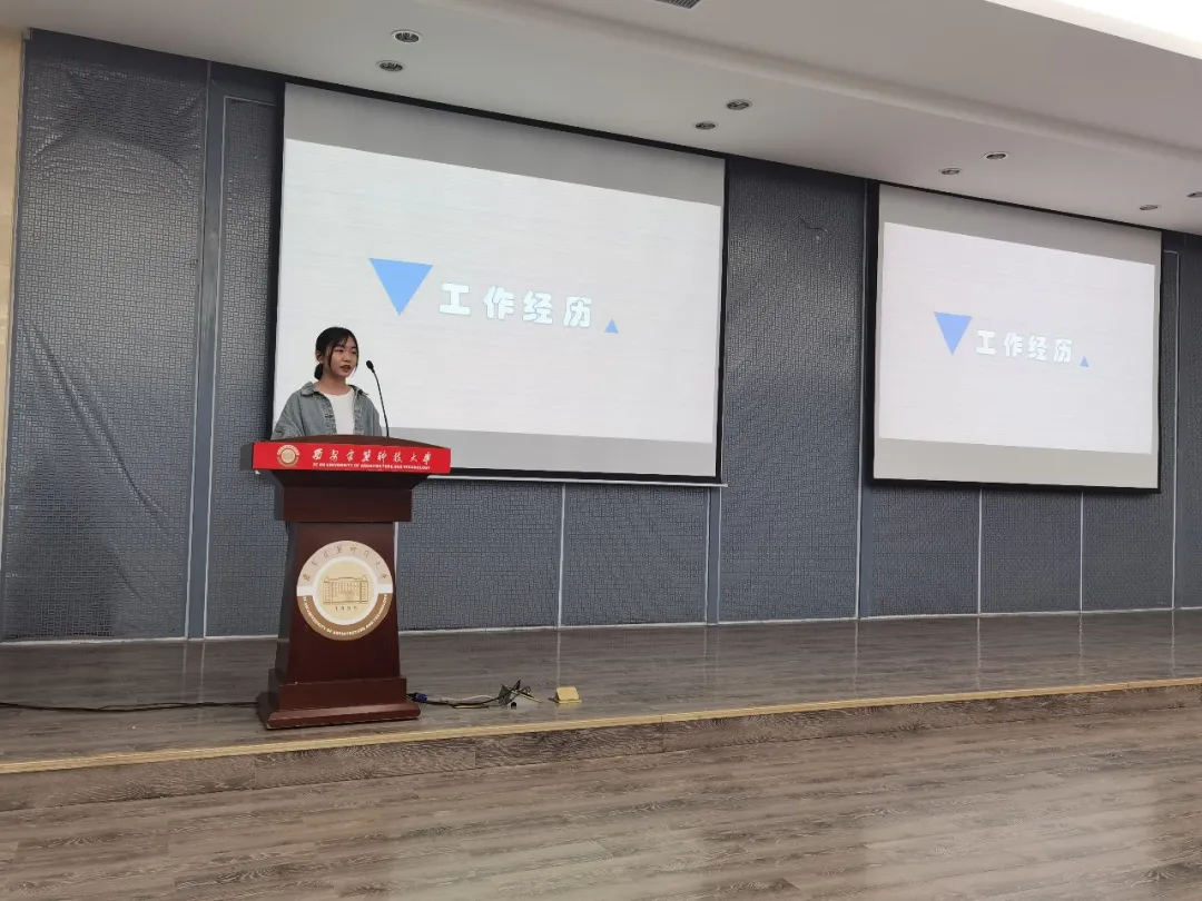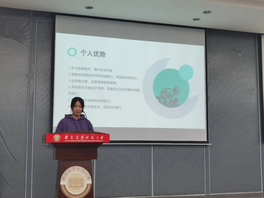 随后上台的龚雨琦同学,答辩流畅自如,严肃端庄,她在分析了自身的优缺点的同时,对过去一学期的工作做了总结。面对评委的提问,她沉着冷静,一一应对,展示出自己对于做好一份工作的决心。