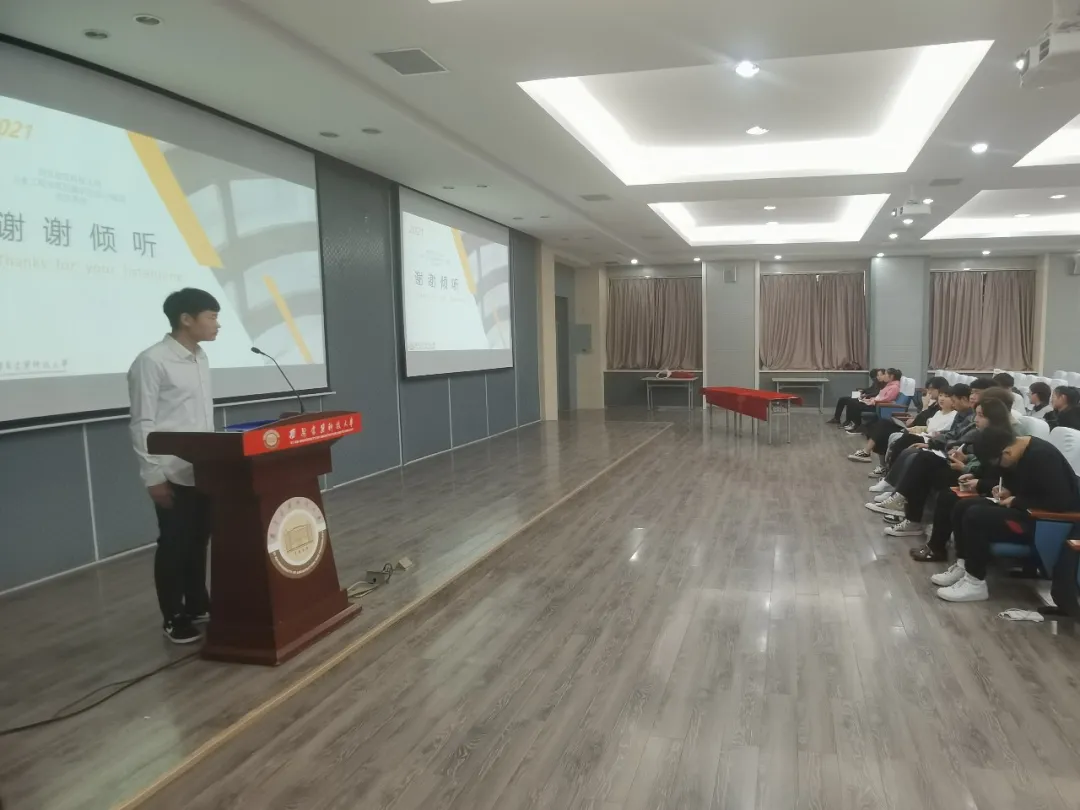 团委学生会(草堂校区)主席陈冬给参赛选手们加油打气,并介绍了答辩特点,告诉选手们不必过于紧张,希望他们在比赛中能够有出色的发挥。