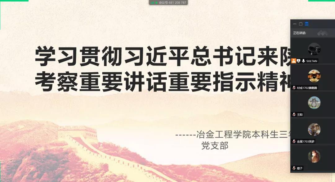 本科生三年级党支部借助腾讯会议平台开展了“学习贯彻习近平总书记来陕考察重要讲话、重要指示精神”专题学习活动。本次活动由本科生三年级党支部张仕威同学主持召开,手机即时比分