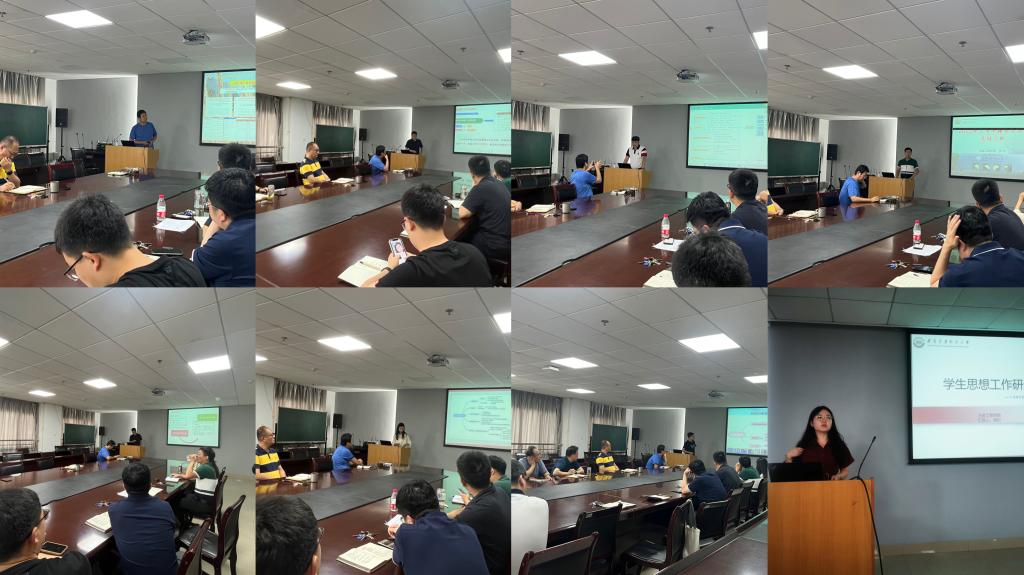 会议伊始,辅导员赵福才、康彦、华如兵、罗帅、乔柯、董甜子、陈善勇、薛彤围绕学生思想政治教育、意识形态、党团工作、日常管理、学风建设、考研就业、稳定安全等重点领域,结合年级工作开展情况,依次进行研判汇报。