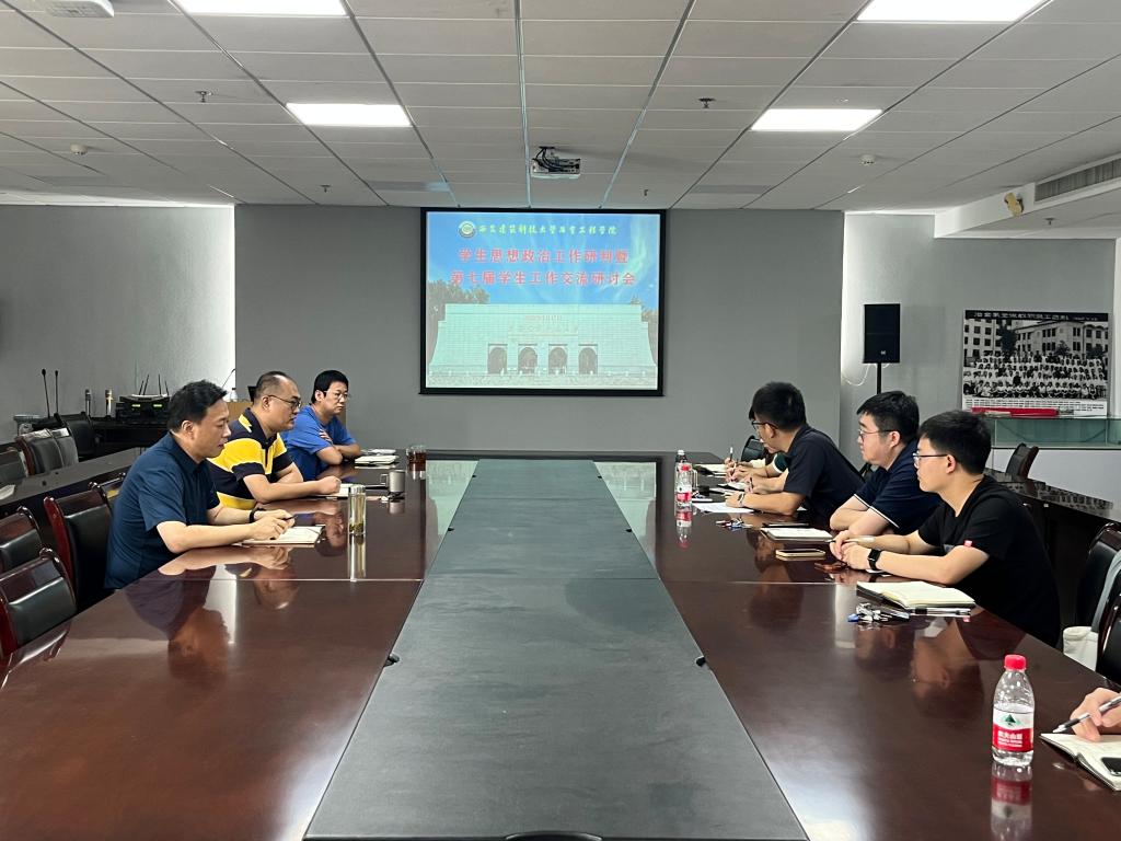 2022年7月17日上午,手机即时比分 在工科大楼1106会议室召开学生思想政治工作研判暨第七届学生工作交流研讨会,学院党委书记马立建、院长李林波出席会议,全体学生工作干部参加会议,党委副书记、副院长张佩主持会议。