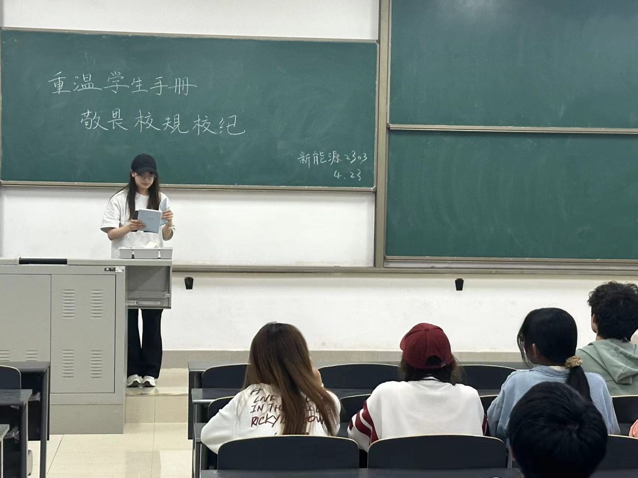 各班班长在班会上就学风及遵规守纪进行了简要阐释。学风,是校园文化的灵魂,是学生成长的摇篮;而遵规守纪,则是学风建设的基石。在校园中,我们每一个学子都应以遵规守纪为准则,共同营造一个积极向上的学风环境。
