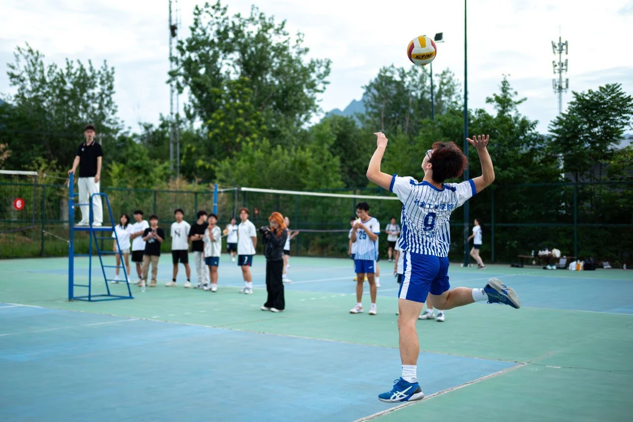 与土木学院展开激烈交锋。双方在攻防转换中呈现胶着战局,冶金男排凭借稳定的战术执行和默契的团队配合,始终保持场上主动权。面对对手的强势反扑,队员们从容应对、及时调整策略,在关键阶段把握机会扩大优势,最终以总比分3:1锁定胜局。终场哨响时,全场欢呼沸腾,球队成功弥补去年遗憾,为学院再添荣耀。
