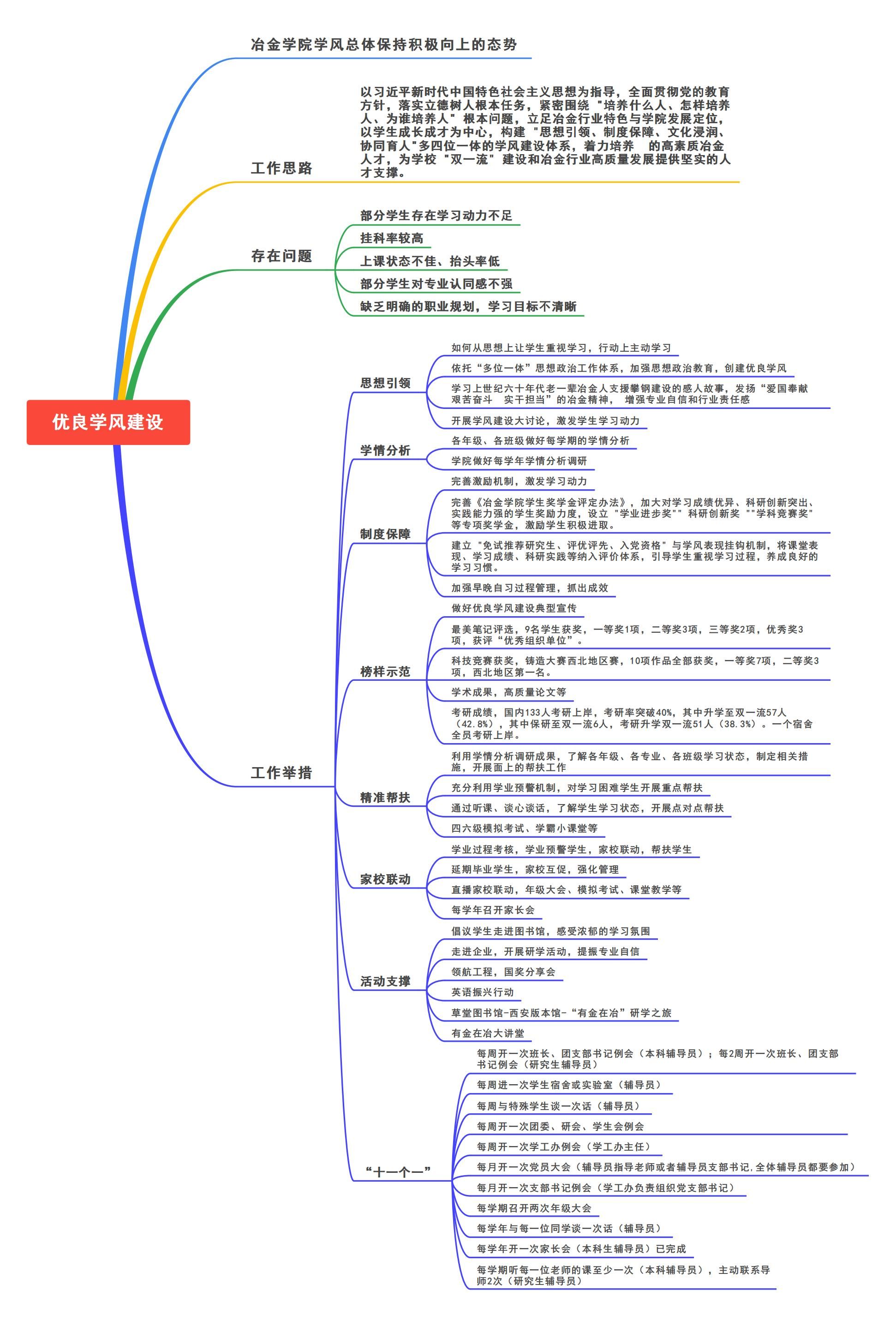 学院立足冶金行业特色与自身发展定位,以学生成长成才为核心,构建了 “思想引领、制度保障、文化浸润、协同育人” 四位一体的学风建设体系,为学校 “双一流” 建设及冶金行业高质量发展提供坚实人才支撑。